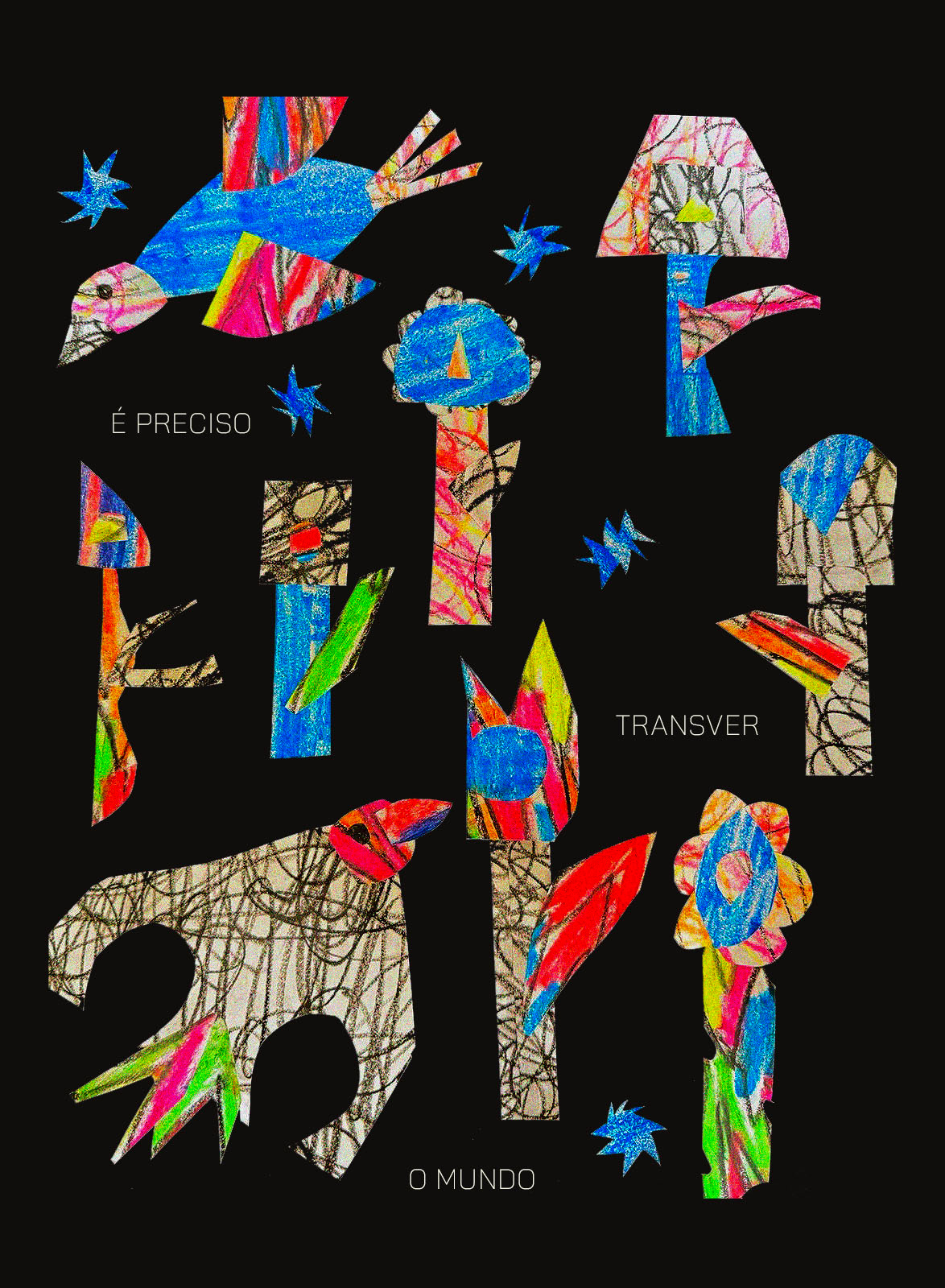 uma colagem inspirada no olhar encantado de Manoel de Barros. pássaros, flores e árvores se encontram para “transver o mundo”, como ele dizia. um convite para descobrir o invisível, o imaginado, o que só a arte é capaz de revelar.